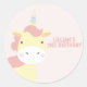 Einhorn mit weichem rosa Hintergrund und gelbem Einhorn mit Regenbogenhorn. Das ist ein lustiges und magisches Geburtstagsthema für Ihr süßes kleines Geburtstagsmädchen. Weitere Einhornlieferungen finden Sie in unserem Shop bei MetroEvents auf Zazzle.