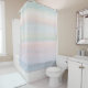 Ein eleganter und hübscher, pastellfarbener Duschvorhang mit abstrakten Pinselstrichen in Rosa, Hellblau und Minzgrün.