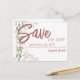 Schicken Sie die "Save the Date" Ankündigung für ein Brautparty oder eine andere Veranstaltung mit Blumenwasser-Rahmen. Personalisieren Sie den Vorder- und Rücktext in den Vorlagenfeldern, entfernen Sie den Text oder bearbeiten Sie ihn mithilfe des Entwurfstools, um einen von Ihnen bevorzugten Schriftart auszuwählen.
