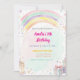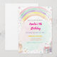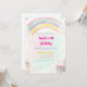A delicate and whimsical watercolor pastel rainbow birthday invitation featuring floating balloons, sweet party treats, and tiny stars. Perfect for little ones celebrating a magical rainbow-themed birthday!