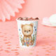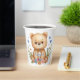 Pastel Watercolor Woodland Bear Blue Hearts Flower Pappbecher
