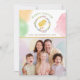Celebrate Easter with this delightful personalizable card featuring Destei’s watercolor willow wreath decorated with pastel Easter eggs. A yellow chick sits in the center, while “Happy Easter” curves above in green lettering. Below, a personalizable area lets you add a name and year in brown font. A yellow line separates the top design from a space for your own photo, creating a perfect blend of artwork and personalization. Watercolor splashes in orange, green and pink decorate the edges on the front, while the back is fully covered in playful splashes for a vibrant, festive touch.