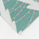 Ein skurriles, nahtloses Muster mit stilisierten Weihnachtsbäumen in Pastelltönen aquamarin, rosa und grün. Jeder Baum ist mit zarten Lichtern oder Punkten geschmückt, die dem weichen und spielerischen Design eine festliche Touch verleihen. Die abwechslungsreichen Formen und Farben der Bäume schaffen eine charmante und einzigartige Urlaubsatmosphäre.