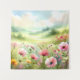 This artwork captures a serene wildflower meadow drifting through soft hills and open skies, painted in a gentle watercolor style that feels light, airy, and immersive. Layers of pastel pinks, blush tones, warm yellows, and fresh spring greens flow together with loose brushstrokes, creating a dreamy landscape that feels both peaceful and alive. Delicate blooms sway across the foreground while distant trees and rolling fields fade softly into the background, giving the scene a calm sense of depth and openness. The overall mood is tranquil, romantic, and quietly joyful, evoking slow mornings, countryside walks, and the comforting beauty of untamed nature. Subtle textures and diffused light enhance the watercolor aesthetic, lending the piece a whimsical cottagecore charm with hints of folk and boho influence. The balanced color story feels soothing without being muted, making the scene feel warm, inviting, and timeless. This visual composition celebrates nature’s softness and simplicity, offering an enchanting escape into a pastel meadow where calm and imagination gently coexist. AI generated artwork.