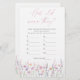 Bring laughter and nostalgia to the bridal shower with this How Old Were They? game featuring hand-painted watercolor wildflowers in soft pastel tones. Display photos of the bride and groom at different ages, and have guests guess how old they were in each picture — the person with the most correct answers wins! It’s a fun, interactive way to celebrate the couple’s love story while creating sweet memories for everyone. This charming floral design coordinates perfectly with the Wildflower Wedding Collection, ideal for rustic, garden, and boho-inspired celebrations.