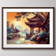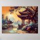 Pastel Zeichnend antikes chinesisches Pagoda-Dorf Poster