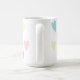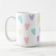 Eine Tasse mit pastellfarbenen Herzen.