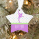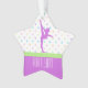 Pastell beschmutzt Gymnastik sternförmige Weihnachtsverzierung mit Lavendel lila Details und Polkapunkten in den Frühling ähnlichen Farben.