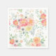 Eine schöne, weiße Papierserviette mit Blumenmuster in sanften Pastelltönen in Pfirsich, Rosa und Grüntöne. Coordinierungsplatte im Lager verfügbar.