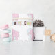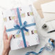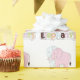 Umhüllungspapier mit einem gefliesten Muster aus rosa und blauen Elefanten, darunter das Wort "Elefanten". Ideal zum Umhüllen einer Babydusche!