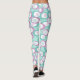 Diese Leggings haben ein Muster von verstreuten Eizellen in Türkis und lila mit weißen Ovalen und Kreise mit Linien innen.