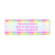 Dieses helle, farbenfrohe Adressetikett hat ein leicht strukturiertes, sich wiederholendes, karges Muster in einem lebhaften Regenbogen in Pastellfarben. Es ist ein stilvolles, lebendiges, hübsches kariertes Schachbrettmuster, das wie Frühling aussieht. Genießen Sie es als Hintergrund für Ihre Adresse in rosa auf einem halbtransparenten weißen Raum.
