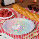 Dieser Papier-Teller hat ein verzaubertes Einhorn mit einer fließenden mehrfarbigen Mähne auf einem weichen Wasserfarben-Regenbogen mit Glitzer-Akzente und anpassbarem Text. Dieses wunderliche Fantasy-Design schafft einen magischen Look für die Geburtstagsfeier eines Mädchens.