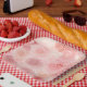 Die Papiertafel aus Party wird in einem schönen Aquarell in pastellrosa Rosa gedruckt. Passen Sie dieses Objekt an oder kaufen Sie, wie es ist. In 9" Größe angezeigt. Verkauft in Paket mit acht. Lizenziertes Bild