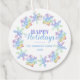 Dieses Urlaubsdesign bietet pastellfarbene Schneeflocken auf weißem Hintergrund mit dem Text "Happy Holidays" in elegantem Skript mit Ihrem Familiennamen und Jahr unten. #christmas #holidays #saisononal #festive #winter #pastel #snowflake #pattern #modern #trendy #stylish #elegant #elegant #press #yellow #lila #white #xmas #partysupplies #Zuhause #office #work #school #diy #doityourself #custom #custom #mayourself #personalisiert #watercolor #modern #watercolor #chic #stylish #elegstyle #fthouse #music #music #music #music Arbeit #tags #favortags #favortags #gifts #partysupplies
