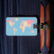 Ein einzigartiges Nehmen auf der Kunst der Weltkarte. Ein strukturiertes buntes Set des gestreiften Musters unter einem Beschaffenheits-Leinwandpapier. Es steht heraus für jeden möglichen Kartenliebhaber- oder -weltreisenden.