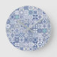 Pastellblau aus marokkanischem Kachel Runde Wanduhr