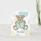 Die Produktgestaltung umfasst einen Teddybär, der ein Geschenk hält. Dieser originelle Cartoon mit personalisiertem Text macht niedliche und einzigartige Dankkarten für Babydusche, Kindergeburtstag und mehr!