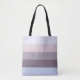 Mit dieser Tasche, die mit fünf (5) Pastellstreifen in Blau, Braun, Grau und Rosa gestaltet wurde, verleihen Sie Ihrem Chic-Look eine elegante Note. Am mittleren Streifen der Vorderseite befindet sich ein individualisierbarer Name, der in einer eleganten, schwarz gepunkteten Schrift gedruckt ist. Symmetrisch auf der Rückseite schätzen Sie das veränderbare Wort "LIEBE", das im selben Schriftart geschrieben ist. Sie können also beide Felder unabhängig personalisieren. Bitte ersetzen Sie den Standardnamen auf der Vorderseite durch Ihren, oder löschen Sie ihn. Auf der Rückseite können Sie "LIEBE" wie es ist behalten, durch das Wort Ihrer Wahl ersetzen oder löschen.