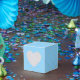 Gittermuster Gunst Box in Akzenten von Baby Blau und Imitate Glitzer Gold, um die Sammlung unten ergänzen.