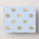 Aquarellfarbene Blütenhochzeit im Akzent von Babyblau und Imitat Glitzer Gold mit einem skurrilen Kuss Lips Muster auf der Rückseite.