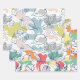 Pastellfarben, drei verschiedene Blätter aus Palmen mit Bio Formen in einem nahtlosen Muster mit weißem Hintergrund.