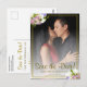 Diese schöne Postkarte wird Ihre Gäste darauf aufmerksam machen, dass sie für Ihre Hochzeit Save the Date werden. Das pastellfarbene Blumendesign mit Ihrem Foto ist umgeben von einem zarten goldenen Rahmen mit einem Blumenstrauß aus Frühlingsblumen wie Rosen, lila Hydrangea und weißen Orchideen und Calla Lilien in den Ecken. Auf der Rückseite finden Sie detailliertere Informationen mit einer gedruckten Rücksendeadresse und einem Ort, an dem Sie Ihre Hochzeitswebsite-URL eingeben können.