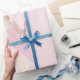 Künstlerische Aquarell Pinsel Striche Geschenkverpackung in Akzenten von rot rosa, creme und ein Hauch von Bronze.