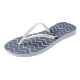 Pastellfarbene Zickzack Flip-Flops mit staubblauem Hintergrund und Zickzack in Schwarz und Grau