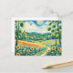 Pastelllandschaft mit Sonnenblumenfeldern und Pfad Postkarte