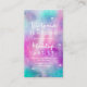 Ein moderner Make-upkünstler, Cosmetologist, Schönheitssalon-Geschäftskarte mit ursprünglichem, hellem und handgemaltem des Türkises, aquamarinen und Lila Watercolornebelfleckraum des Rosas. Ein Weltraumentwurf mit den hellen und vibrierenden handgemalten Wasserfarben
