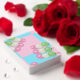 Das Design der "Dango Away" wurde um einen blauen und rosa, karierten Hintergrund ergänzt, der an die sakurischen Blätter erinnert, die sanft durch einen frischen Frühlingshimmel schwebten. Die Zugabe eines kleinen Schattens hilft der Gefahr, wirklich Pop. Klassische Spielkarten