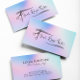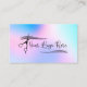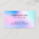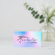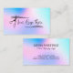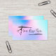 Fügen Sie Ihr eigenes Logo hinzu, um individuelle Visitenkarten für einen Schönheits- oder Friseursalon zu erstellen. Auf der Rückseite können Sie den schwarzen Schriftart Stil, Größe und Farbe anpassen. Passen Sie die Größe Ihrer Firmenmarke an... oder fügen Sie bei Bedarf zusätzlichen Text hinzu. Der Hintergrund zeigt Farbverlaufskunst in irisierenden oder holografischen Farben. Es ist ein digitales Kunstwerk, das wie ein Foto druckt. Blau, Rosa, lila, Aqua und Weiß.