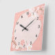 Pastellrosa Blumenmuster Quadratische Wanduhr
