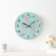 Pastellrosa Flamingos Grünes Muster Große Wanduhr