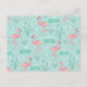 Pastellrosa Flamingos Grünes Muster Postkarte