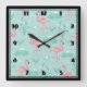 Pastellrosa Flamingos Grünes Muster Quadratische Wanduhr