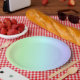 Pastellrosa, hellgrün bis zart rosa pappteller