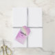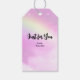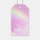 Geschenke Tags mit einem schönen Hintergrund. Ein rosa pastellfarbener Himmel mit flauschigen Wolken und einem Zitronenbogen. Magisches und skurriles Design.
