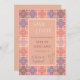 Rett-the-date Karten für eine Hochzeit mit einem Fliesenmuster in weichen Pastelltönen in Orange, Rosa, Aprikose, Sand und Pfirsich.