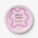 Pastellrosa Retro Hochzeitsgrenzennacht Datum Pappteller