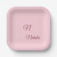 Pastellrosa Vollfarbe mit Monogramm Pappteller