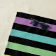 Pastellfarbene Streifen in Regenbogenfarbe abwechselnd mit schwarzen Streifen.
