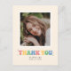 Vielen Dank an Freunde und Familie, dass Sie Ihre Abschluss-Feier im Stil mit diesem Single Foto danke Ihnen postcard. Es bietet Platz für ein Foto über die Worte "danke" geschrieben in Blasen Buchstaben in Pastellfarben.