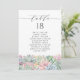 Fügen Sie Ihrem Ereignis mit diesen anpassbaren Tischkarten einen Boho-Akzent hinzu. Es verfügt über eine Aquarellgarage mit pastellrosa, grünen und blauen Sukkulenten. Diese köstliche Tischkarte eignet sich ideal für Hochzeiten, Abschlüsse, Geburtstage, Babyduschen und vieles mehr.