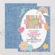 Hello Double Digits! Preppy-Patch-Denim-Einladung zum 10. Geburtstag mit Regenbogen, Herz und Friedenszeichen.