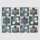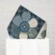 Das niedliche Ländermuster weist eine vierteilige Wiederholungsgrafik von Blume mit Patchwork-Schaltflächen in Blautönen mit komplementären Farben auf.