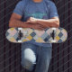 Bringen Sie mit diesem Patchwork-Design ein überraschend eigenartiges Muster auf Ihr Skateboard. Das bedruckte Design mischt blaue, rosa, gelbe und graziöse Blumen.