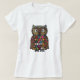 T-Shirt Spitze mit einer niedlichen Patchworkcollagen-Eulenillustration gemacht von den einzelnen Fotografien der Blumen, der Tiere, der Landschaften, der Sonnenuntergänge und noch des Lebens.