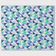 Ein modernes Dreieck-Patchwork-Muster mit Schneeflocken, die aus dem geometrischen Muster herausgucken.